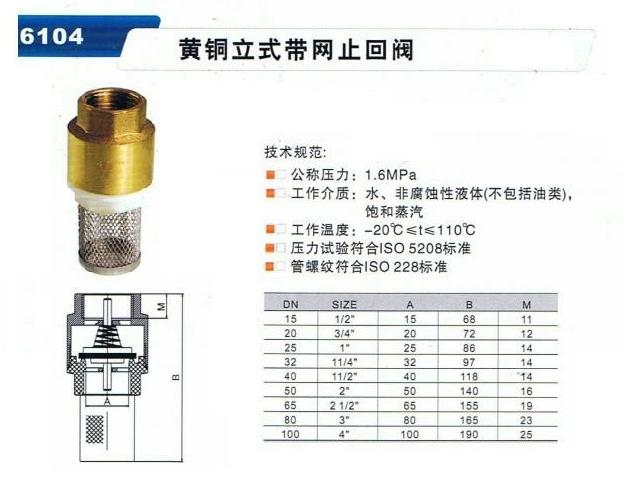 黄铜立式带网止回阀