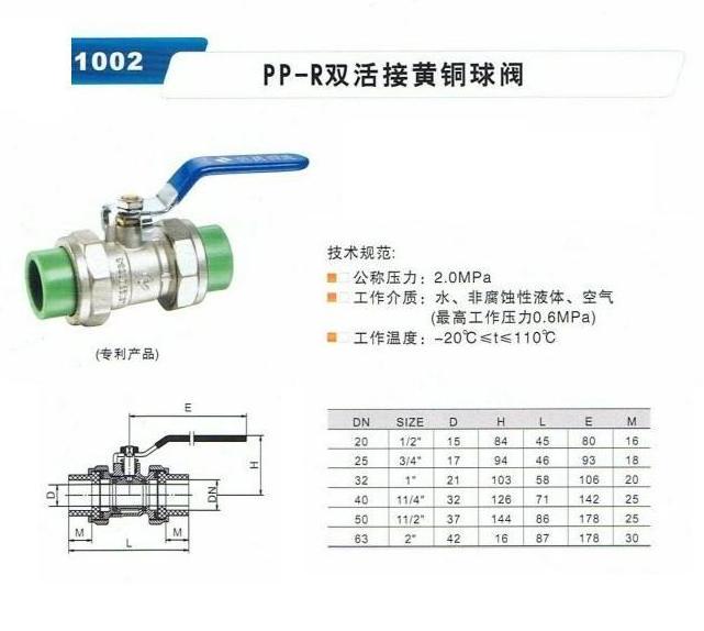 PP-R双活接黄铜球阀