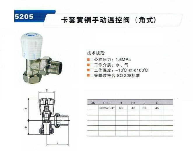 卡套黄铜手动温控阀(角式)