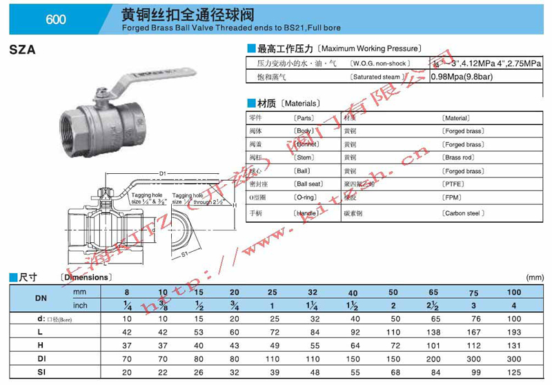 黄铜丝扣全通径球阀