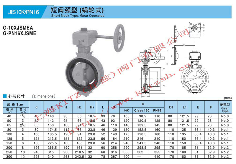 短阀颈(蜗轮式)蝶阀